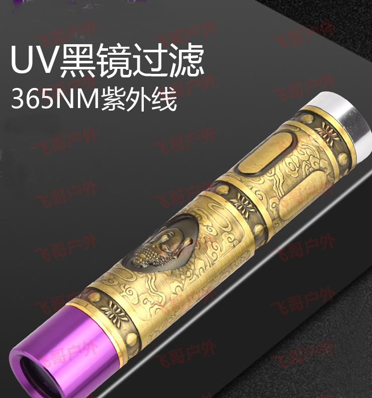旋转开关玉石灯琥珀鉴定强光手电筒紫光365nm荧光剂检测可定制LOG