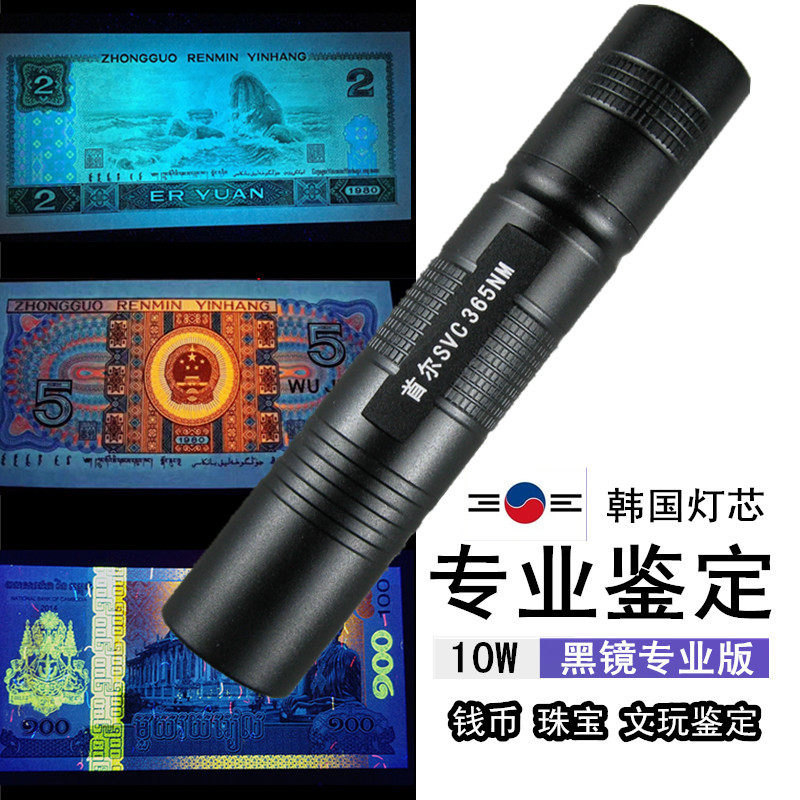 首尔10W紫外线手电筒验钞灯鉴定瓷器琥珀荧光剂检测笔365nm紫光灯