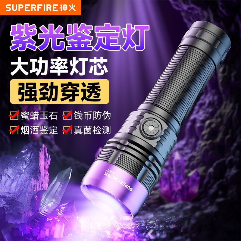 神火365nm玉石琥珀蜜蜡验钞古董专用防伪真菌检测紫光鉴定灯手电