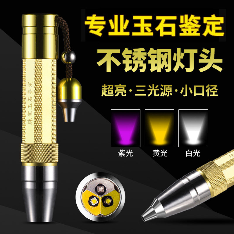 超亮三光源玉石鉴定手电筒365nm小口径灯头翡翠琥珀蜜蜡白光紫光
