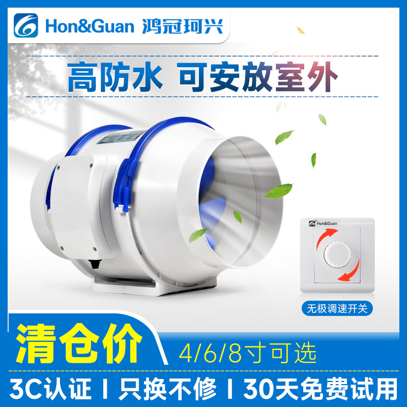鸿冠静音管道抽风机4/6/8寸强力厨房油烟排气换气排风扇家用商用