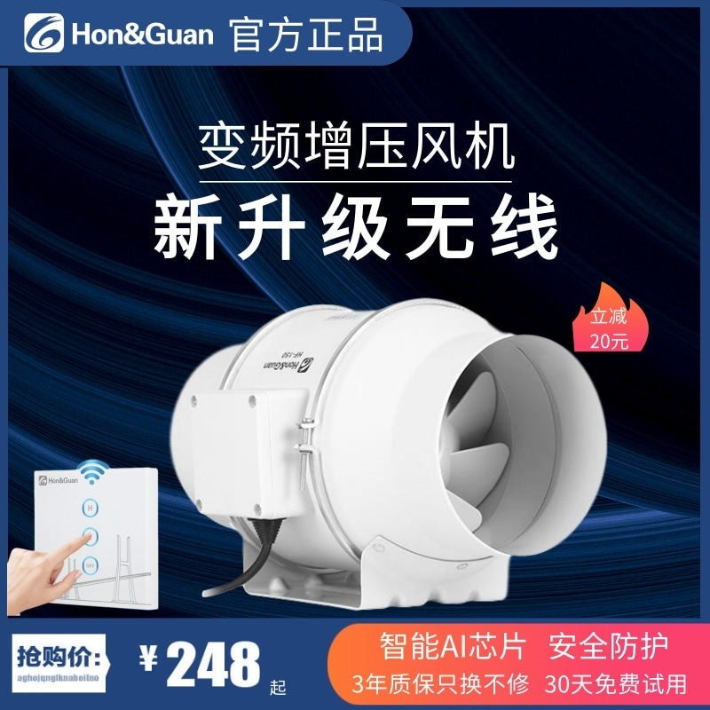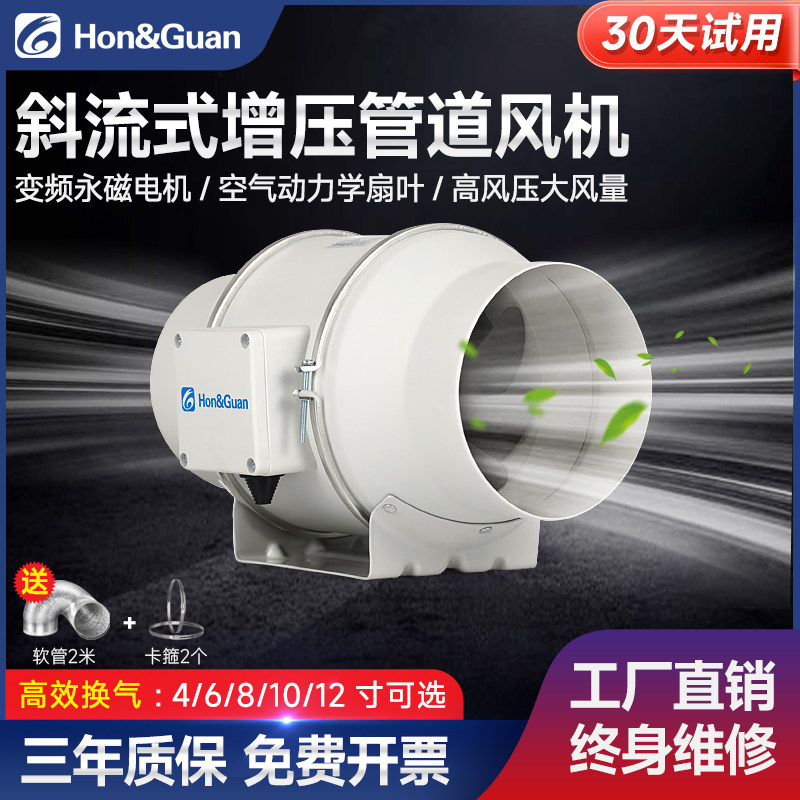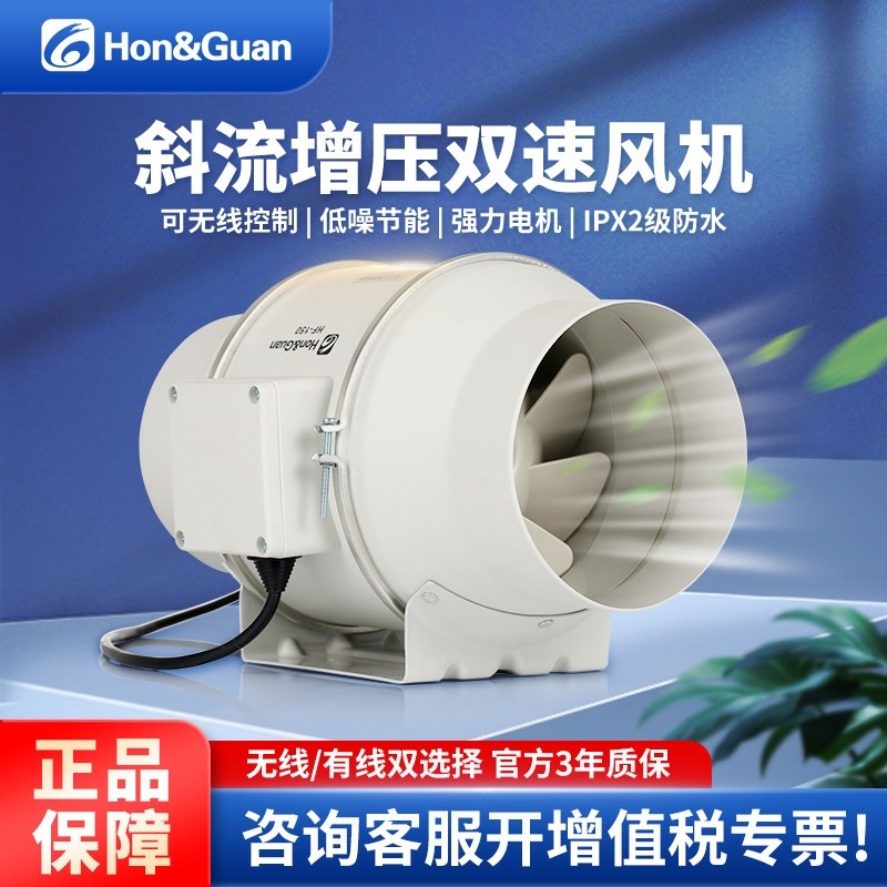 Hon&Guan/鸿冠HF-PE斜流增压管道风机强力静音厨房抽风机大吸力