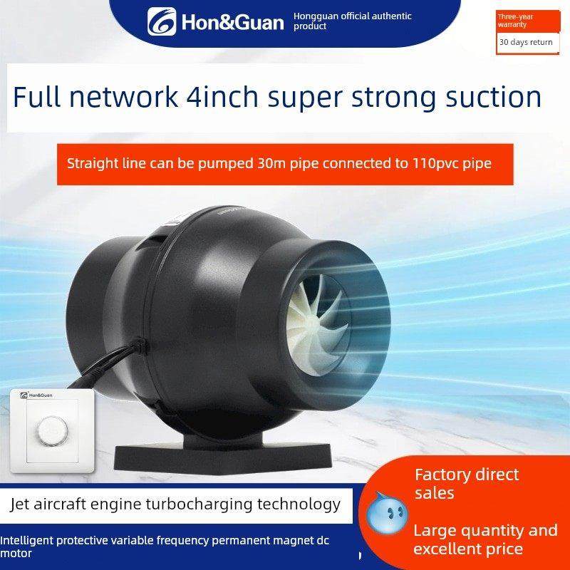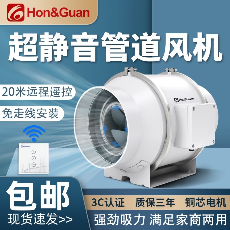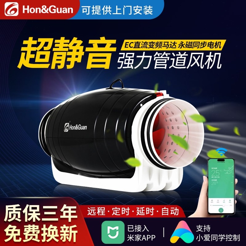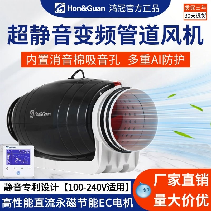 鸿冠管道风机超静音家用4/6/8寸扇强力变频抽风卧室厨房排风换气