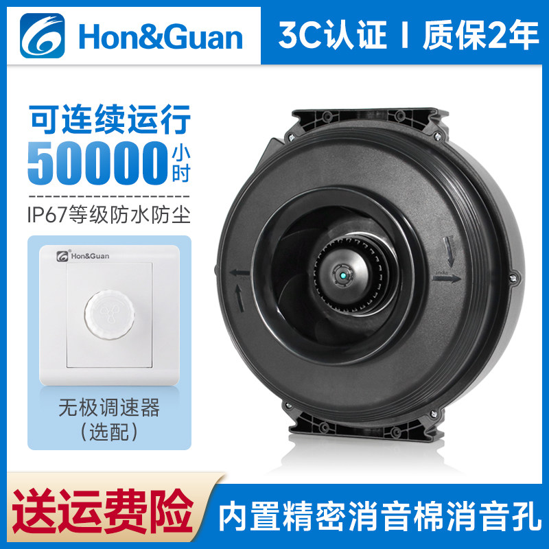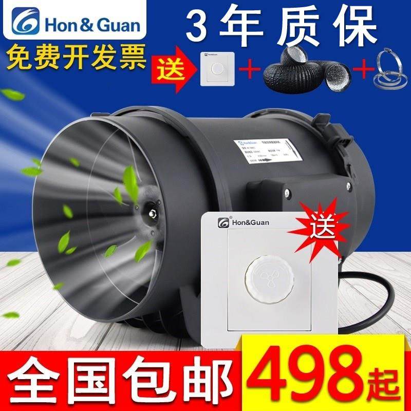 鸿冠管道风机6寸8寸变频强力厨房风扇换气扇家用抽风机艾灸排气排