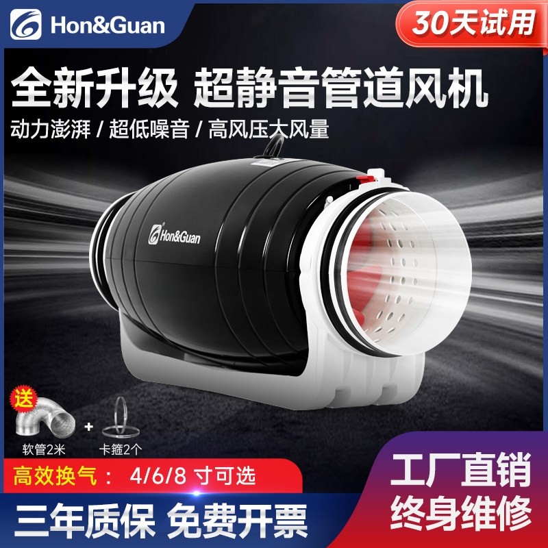 鸿冠超静音管道风机排风扇强力抽寸排气扇卫生间厨房家用风机6/8