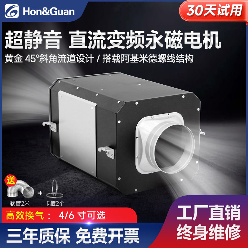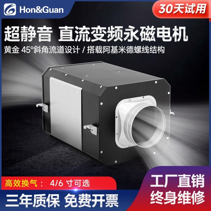 鸿冠管道风机超静音家用4/6/8寸气扇强力变频抽风卧室厨房排风换