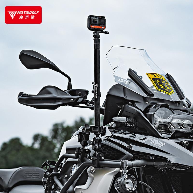 赛车机车越野摩托车骑行直播拍摄行车记录仪延长铝合金自拍杆支架