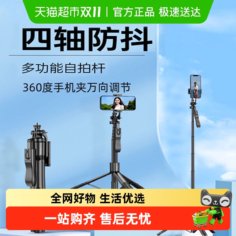 ar2025新款自拍杆防抖手机云台稳定器手持支架旅游拍照拍vlog摄像神器直播视频跟拍360度自动旋转便携铝合金4