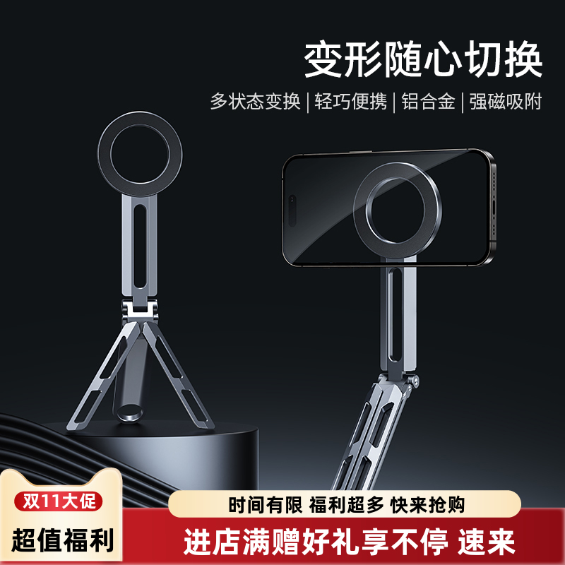 思莱普便携折叠手机拍摄三脚架Magsafe磁吸手持铝合金自拍杆拍视频神器助拍器vlog摄影多功能桌面拍照架