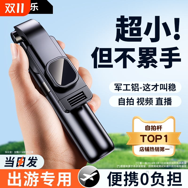 旅游便携】手机自拍杆2025新款通用迷你拍照神器落地三脚架支架360度旋转拍摄多功能手持防抖蓝牙专用铝合金