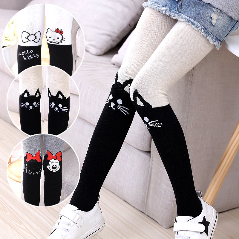 秋冬加厚加绒纯棉儿童连裤袜女童拼接打底裤宝宝中筒连体长丝袜子