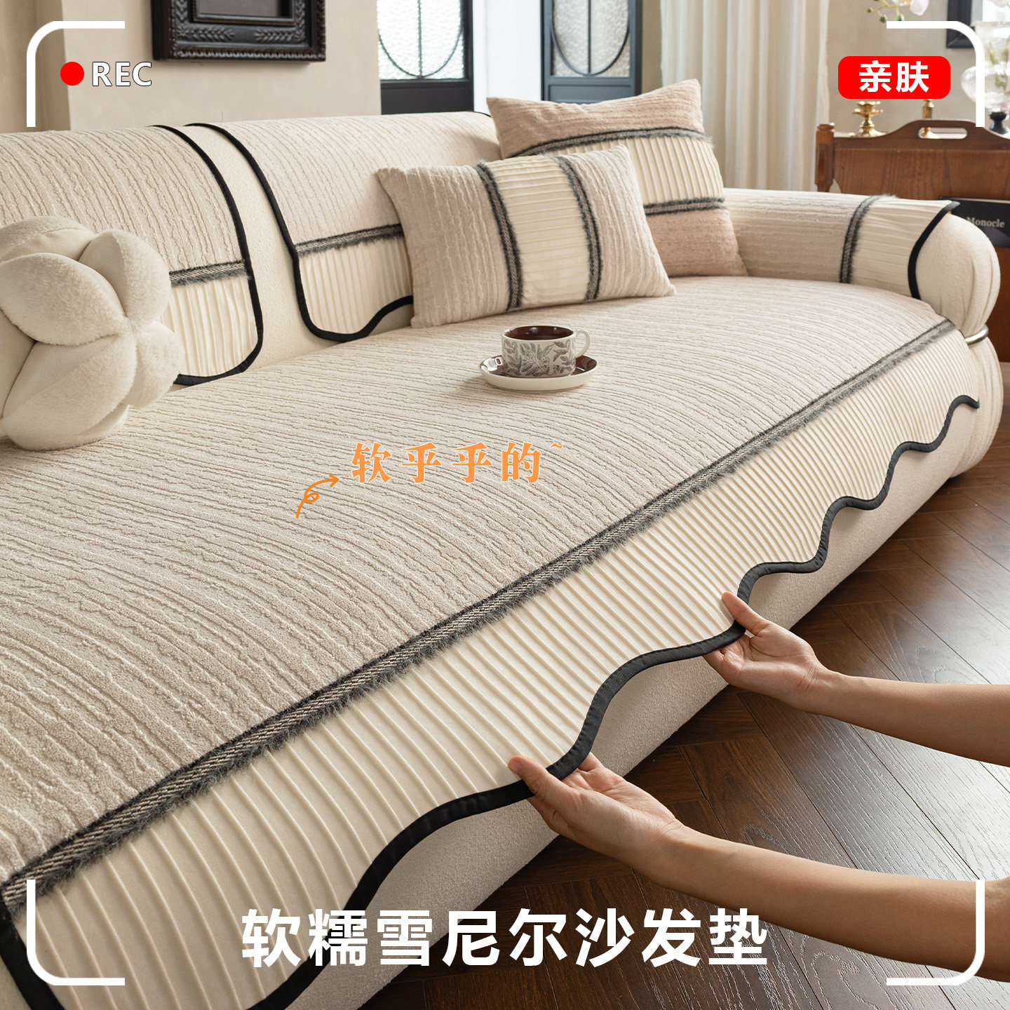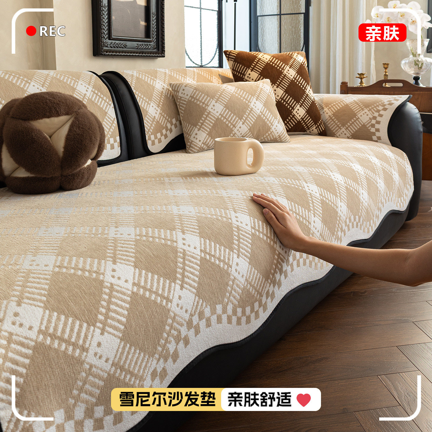 雪尼尔组合沙发垫垫布四季通用防猫抓防滑现代简约纯色罩套全盖巾