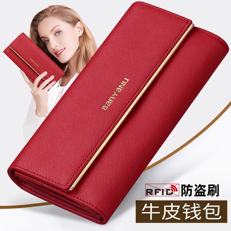 - 欢乐颂安迪刘涛同款钱包头层牛皮真皮钱包凯莉长款钱包锁扣女手包