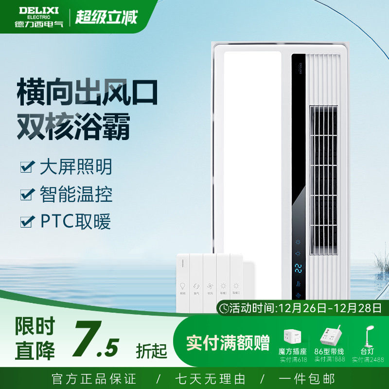 德力西风暖浴霸家用取暖排气扇五合一体集成吊顶卫生间暖风浴霸灯