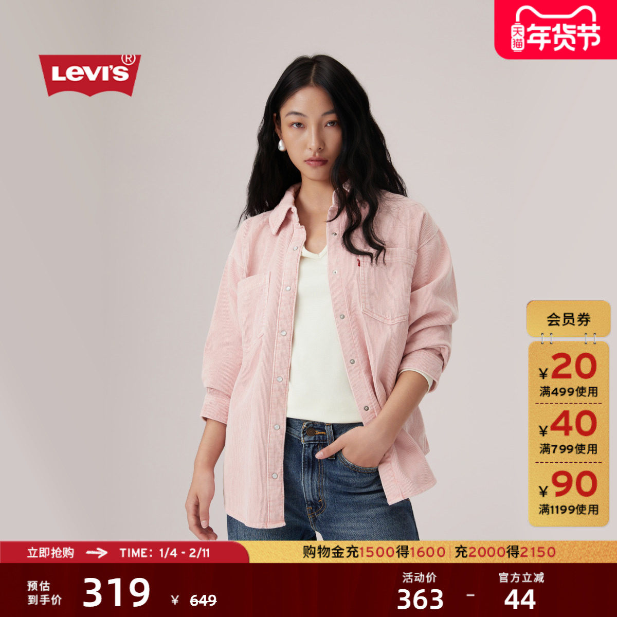 Levi's李维斯25年秋冬新款女士美式复古巴恩风灯芯绒翻领长袖衬衫
