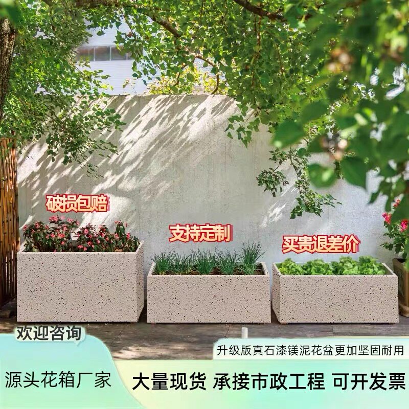 户外花箱水泥花盆种植箱户外庭院长方形镁泥花盆大号真石漆镁泥盆