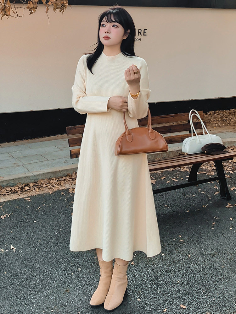 胖mm针织连衣裙春季新款200斤大码女装韩版高领气质显瘦毛衣长裙