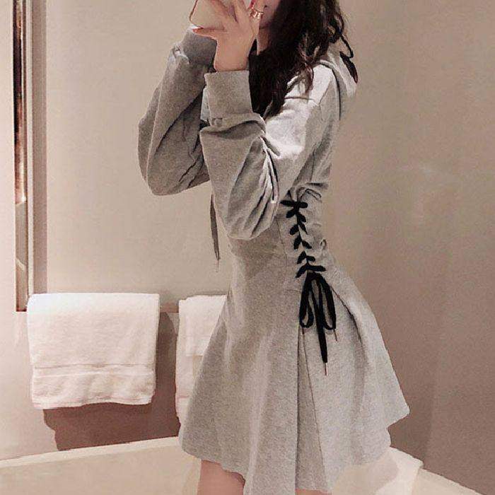 - 蕾丝连衣裙灰色