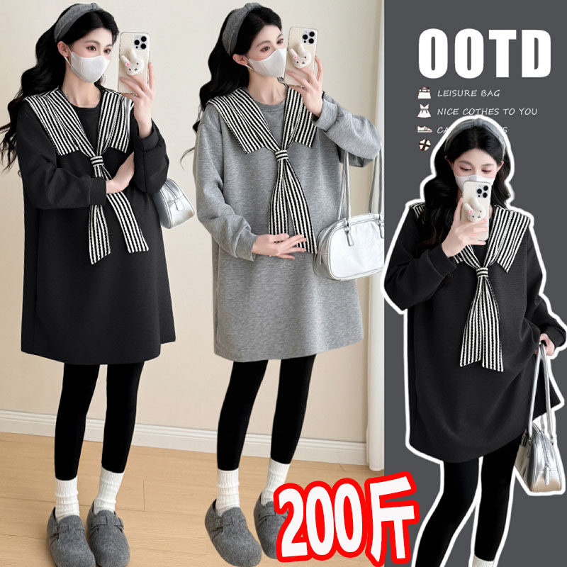 大码孕妇卫衣连衣裙2026春季新款韩版宽松减龄洋气披肩上衣200斤