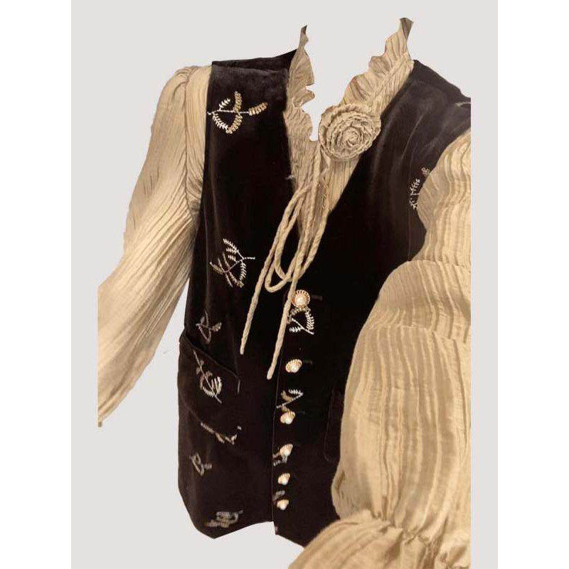 - 无袖刺绣连衣裙a字裙