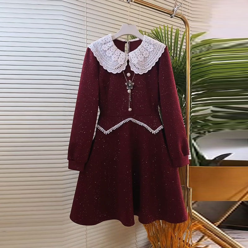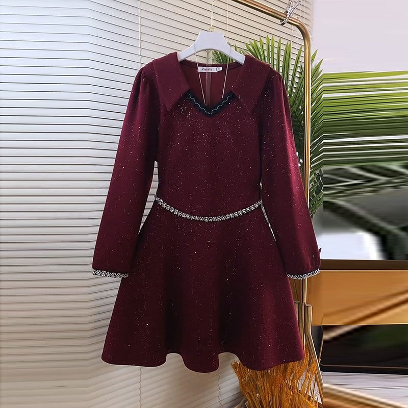 2026春季新款胖mm减龄大码女装韩版时尚娃娃领收腰显瘦亮闪连衣裙
