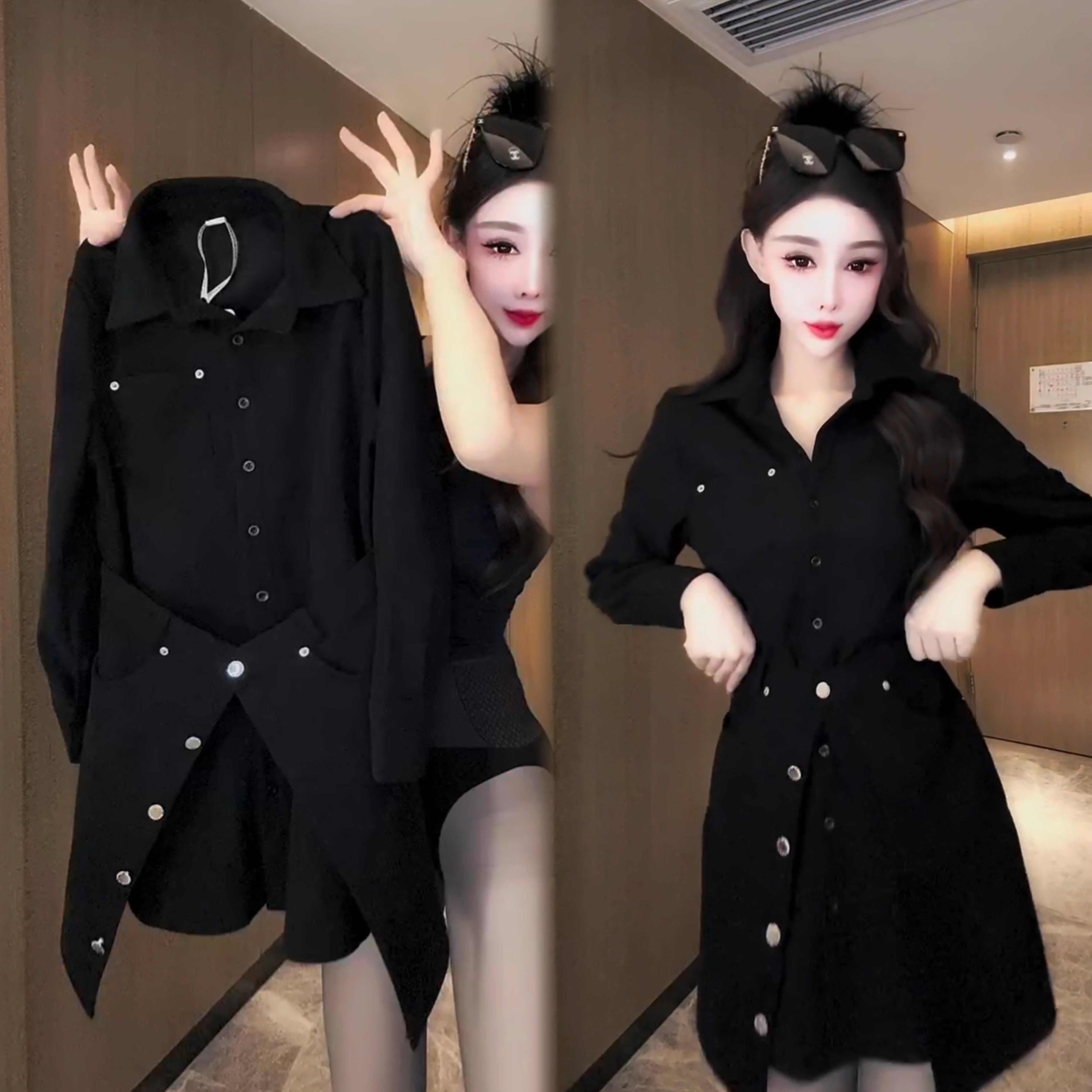 - 黑色镂空连衣裙