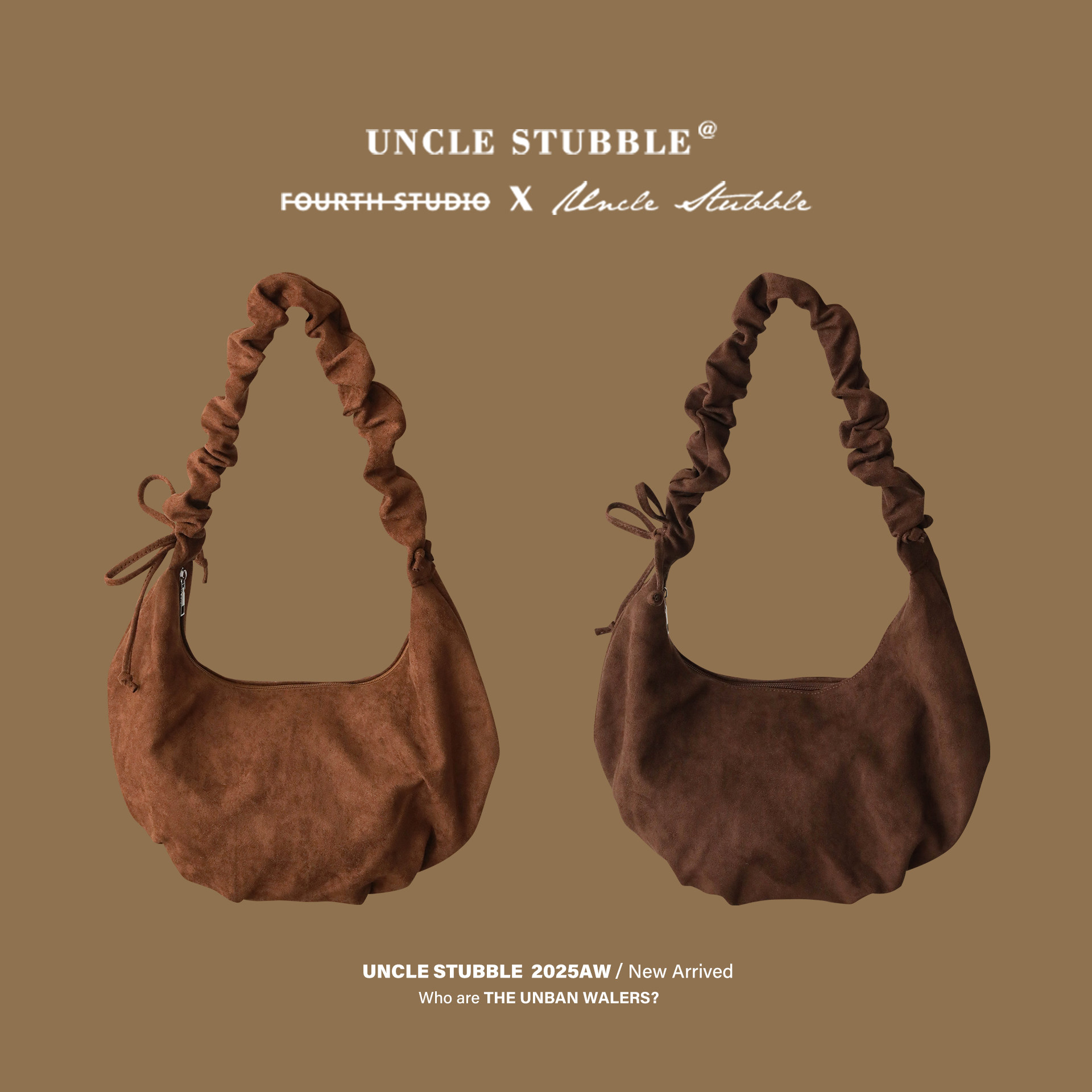 畹町复古棕色女包冬日繁星麂皮印花单肩斜跨包hobo包大容量托特包