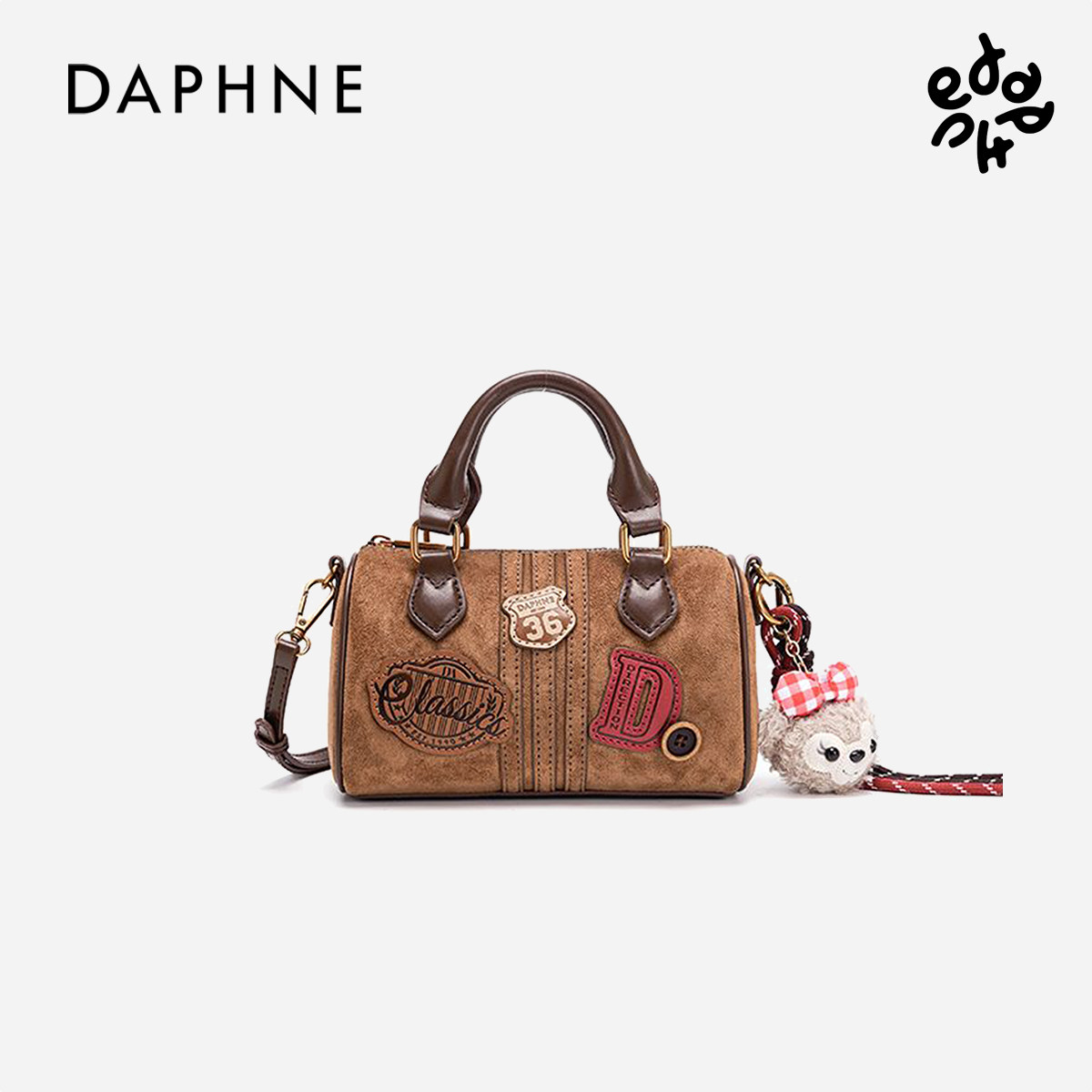 达芙妮麂皮波士顿包女2025新款复古学生单肩斜跨通勤手提保龄球包