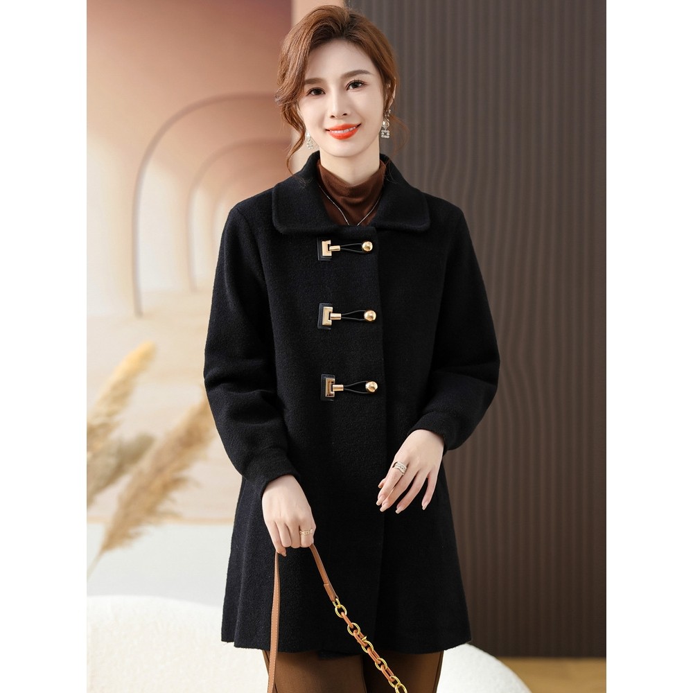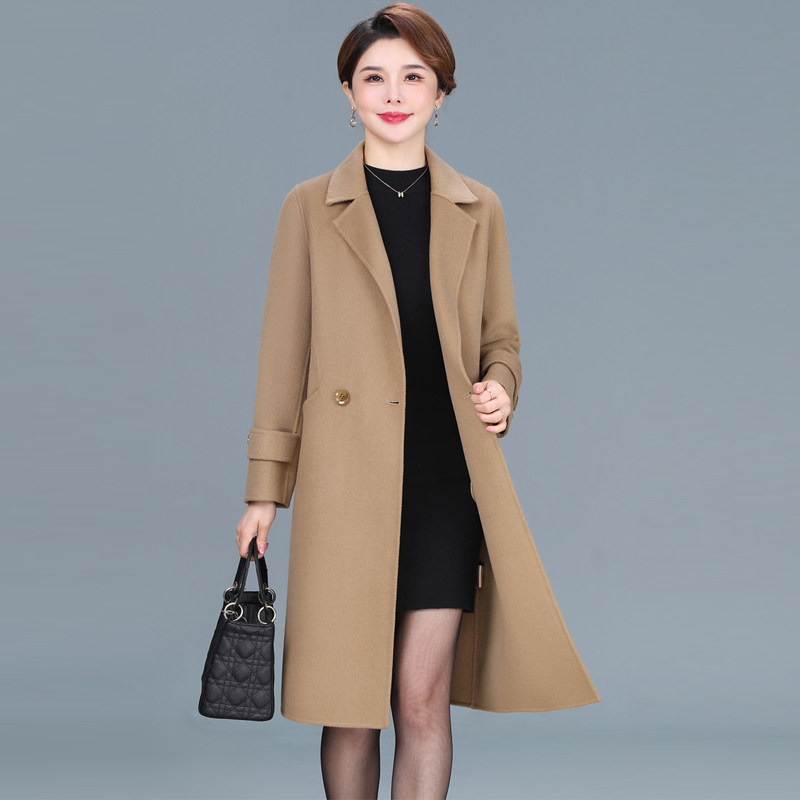 双面绒a字版羊毛大衣女士休闲风中长款正肩方领宽松中年毛呢外套