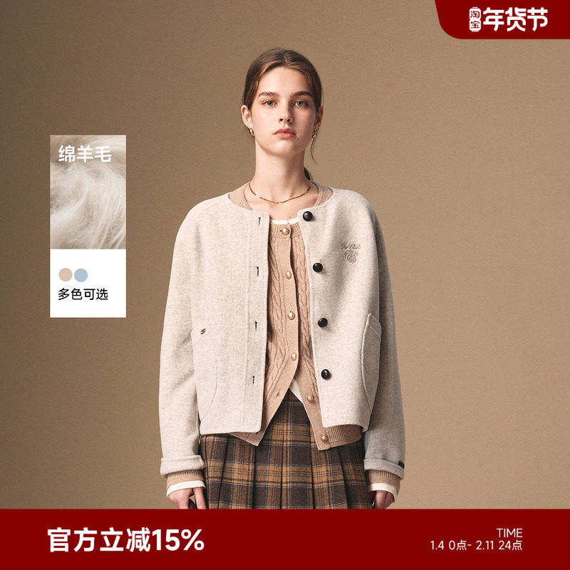 Teenie Weenie小熊毛呢大衣女25秋冬新款舒适气质A字版毛呢外套