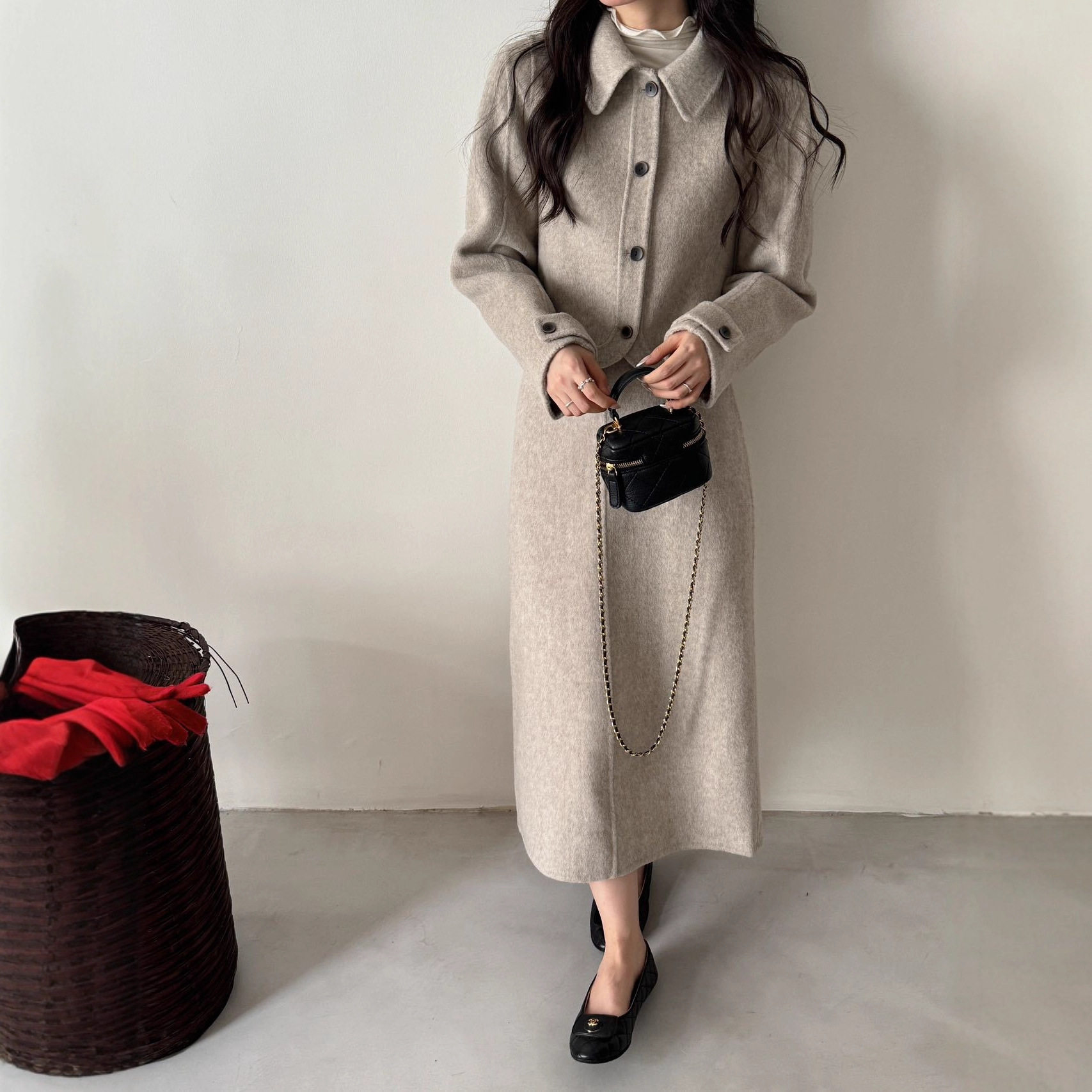双面羊毛大衣两件套女2025秋冬新款韩版休闲半身长裙毛呢A字套装