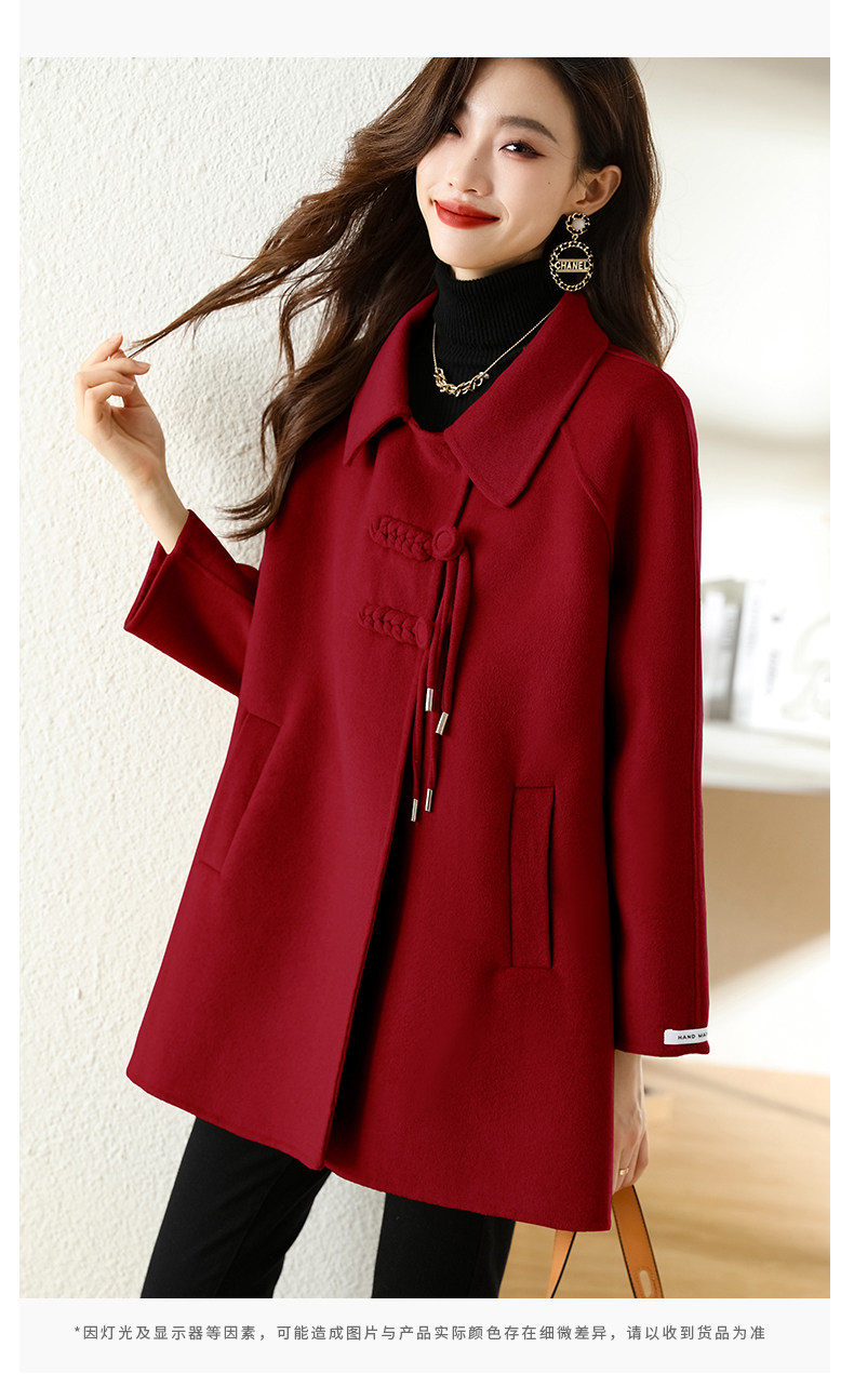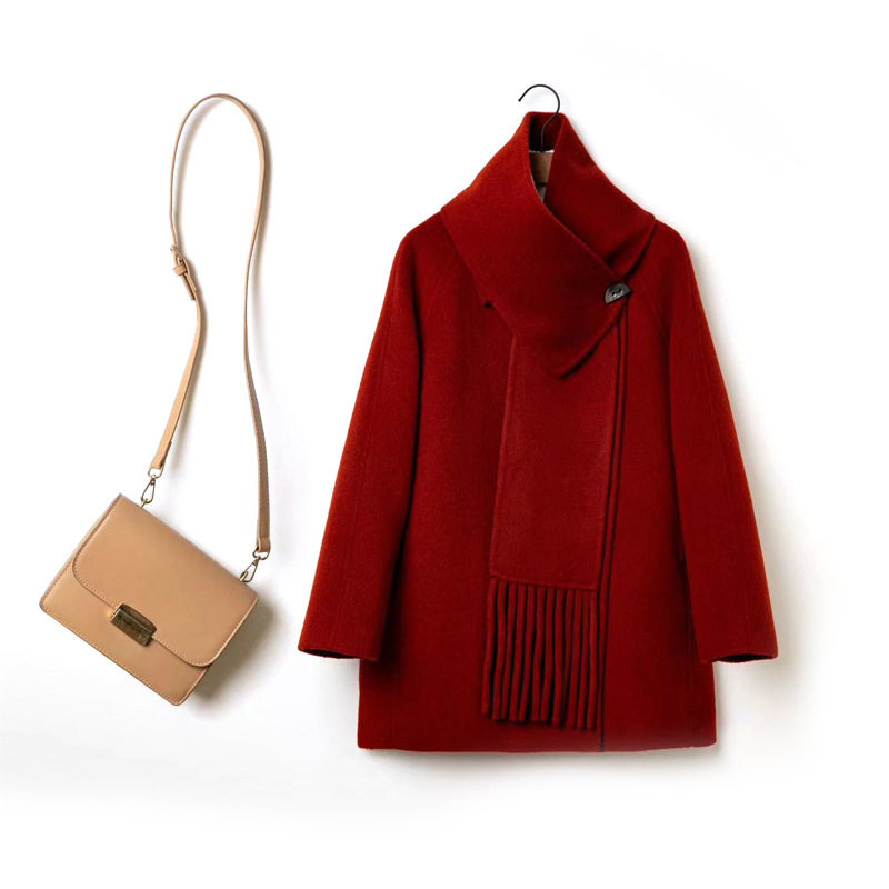 红色过年双面100%羊毛呢大衣女a字版宽松百搭外套小个子羊绒外套