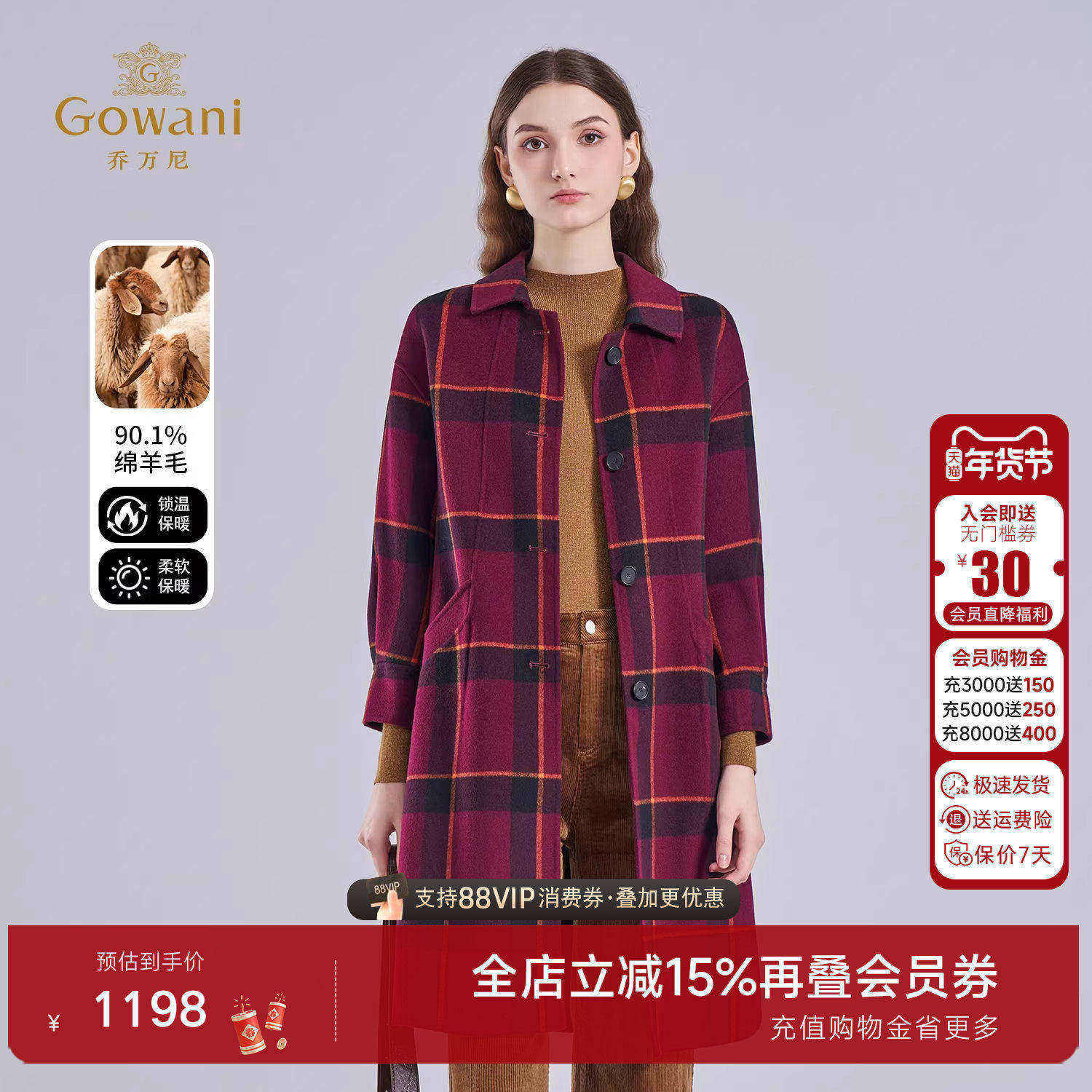 乔万尼学院风格纹毛呢外套女中长款A字版型百搭高级感大衣EI4A542