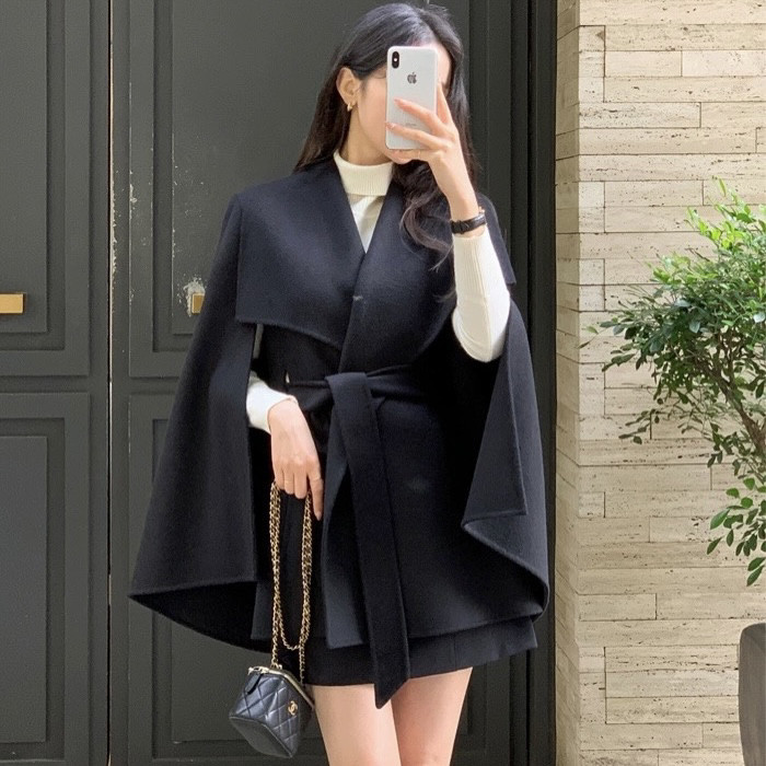 2025年新款双面羊绒羊毛大衣女中长款a字版斗篷小香风羊毛呢外套