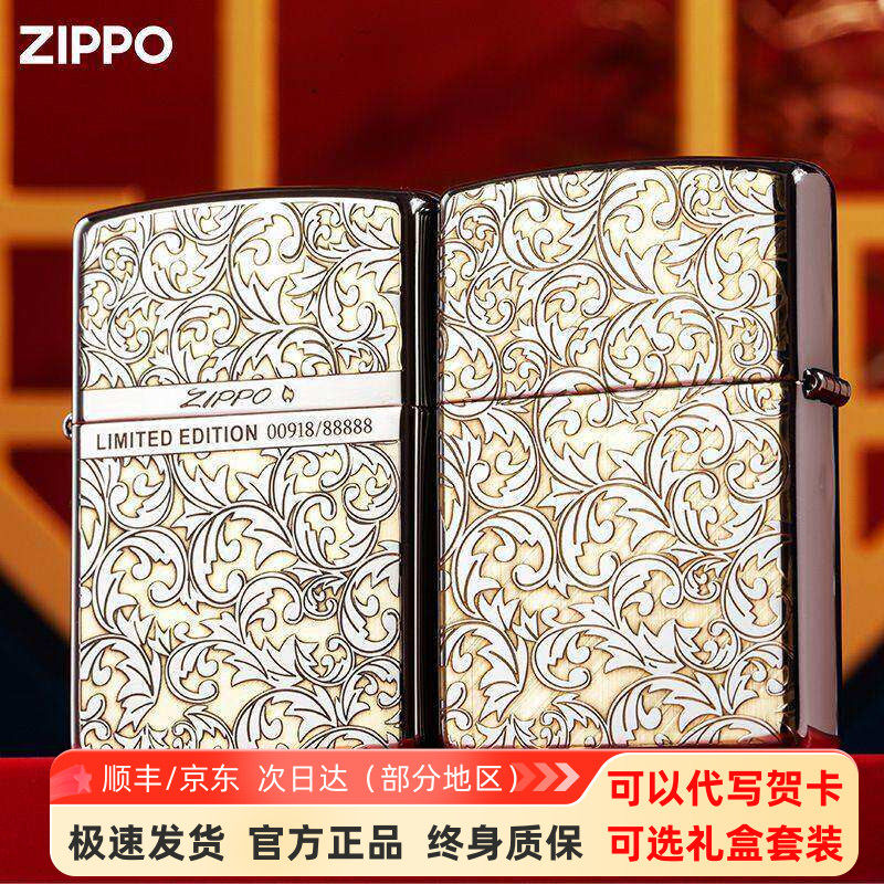 zippo打火机芝宝正版幸运唐草限量编号正品雕刻煤油防风男士礼物