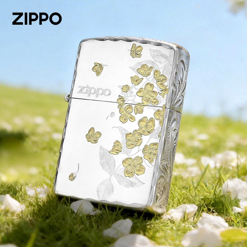 正版ZIPPO打火机正品 春绘茉莉 镀银精雕繁花防风煤油生日礼物男
