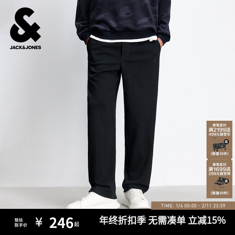 杰克琼斯男装秋季休闲裤男款针织刺绣宽松阔腿松紧腰头纯色长裤子