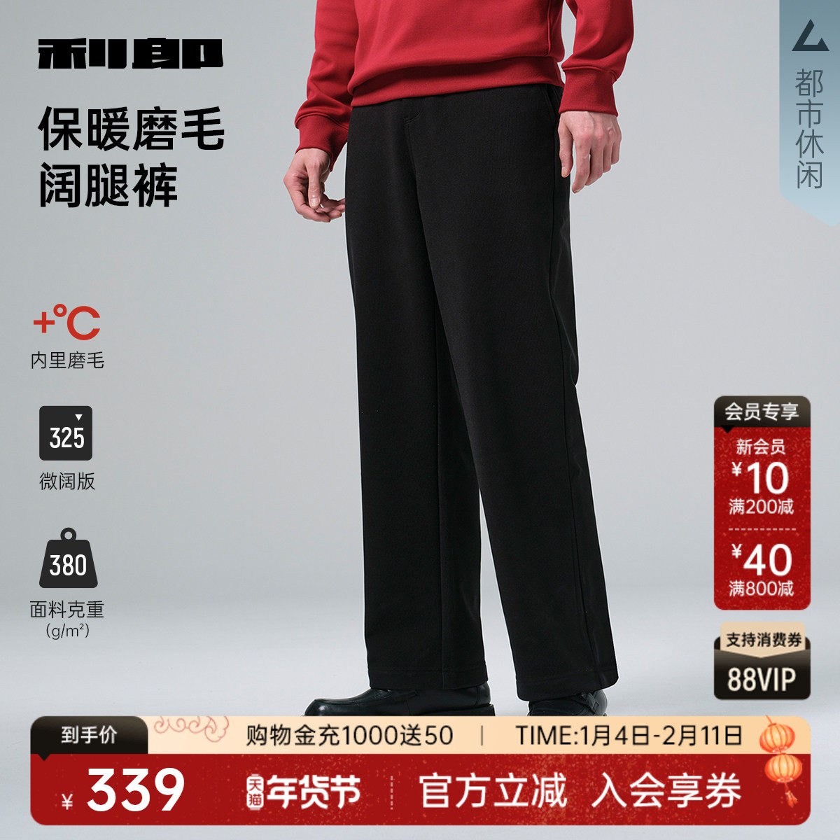 【内里磨毛/阔腿】利郎官方宽松休闲裤男2025冬季保暖松紧腰裤子