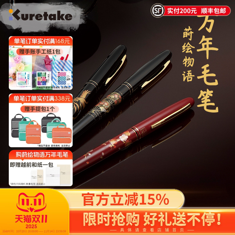 日本Kuretake吴竹莳绘物语万年毛笔套装钢笔式毛笔小楷抄经书法笔勾线画画毛笔自带墨水墨囊可换墨小号秀丽笔