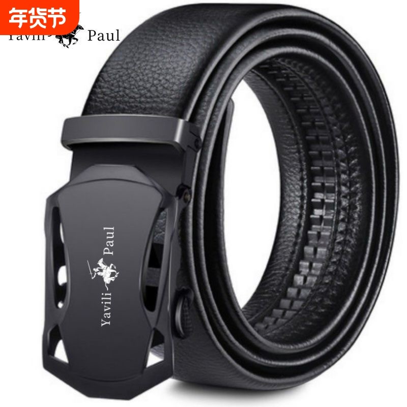 保罗正品男士皮带真皮牛皮自动扣腰带结实耐用百搭潮流休闲裤腰带