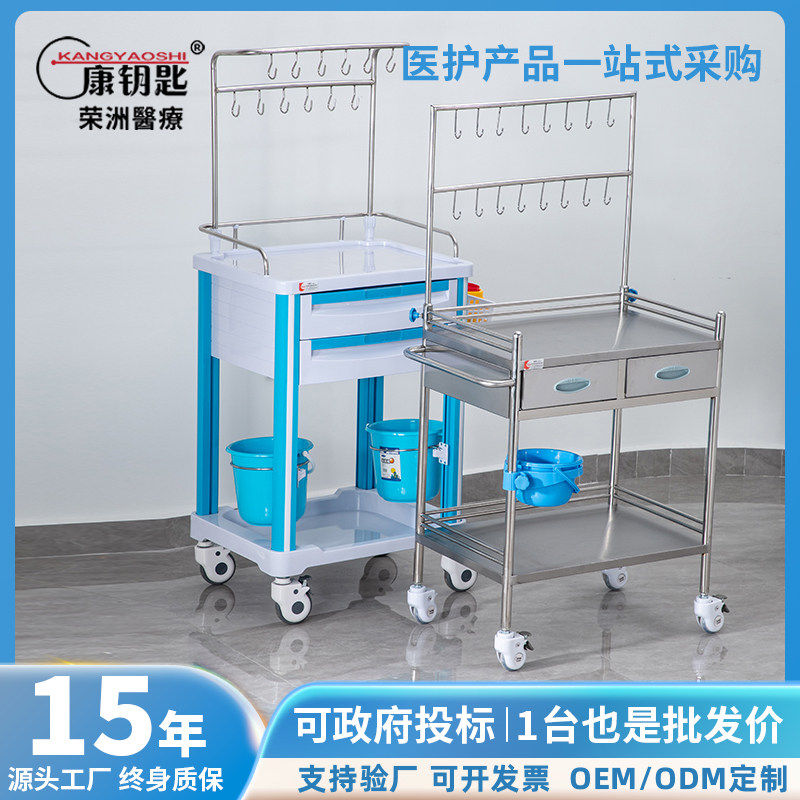 康钥匙医用输液车不锈钢加厚ABS治疗车护士输液手推车吊瓶推车