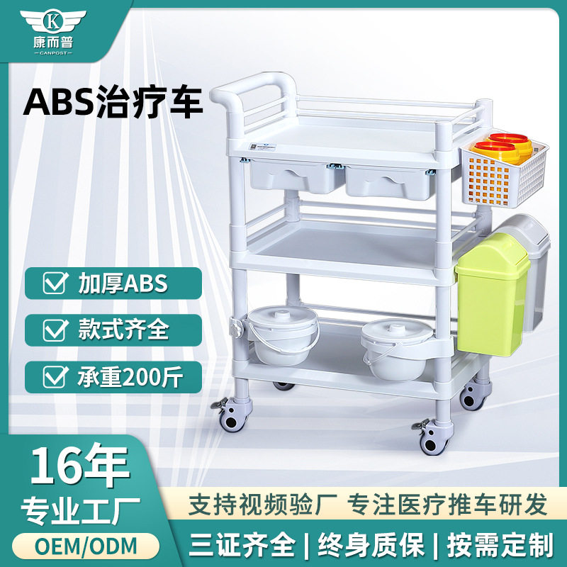 康而普医用小推车ABS治疗车医院护士医疗手术器械台车美容手推车