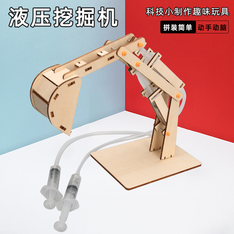 STEM教育液压挖掘机儿童手工diy材料包科技小制作 小学生物理实验