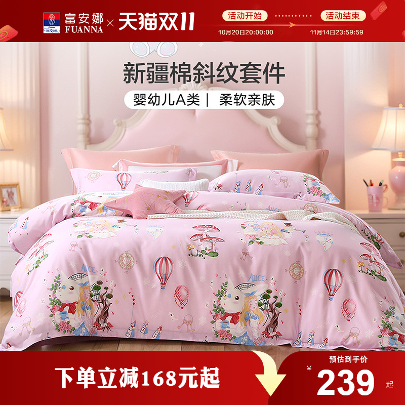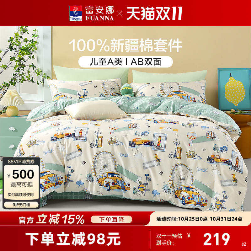 富安娜家纺儿童床上四件套纯棉床单被套男女童三件套宿舍床上用品