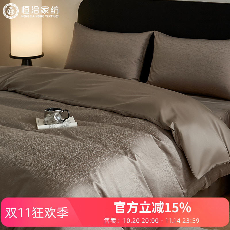 轻奢风纯棉四件套男四件套新款高级感床上四件套全棉1.2m床笠咖色