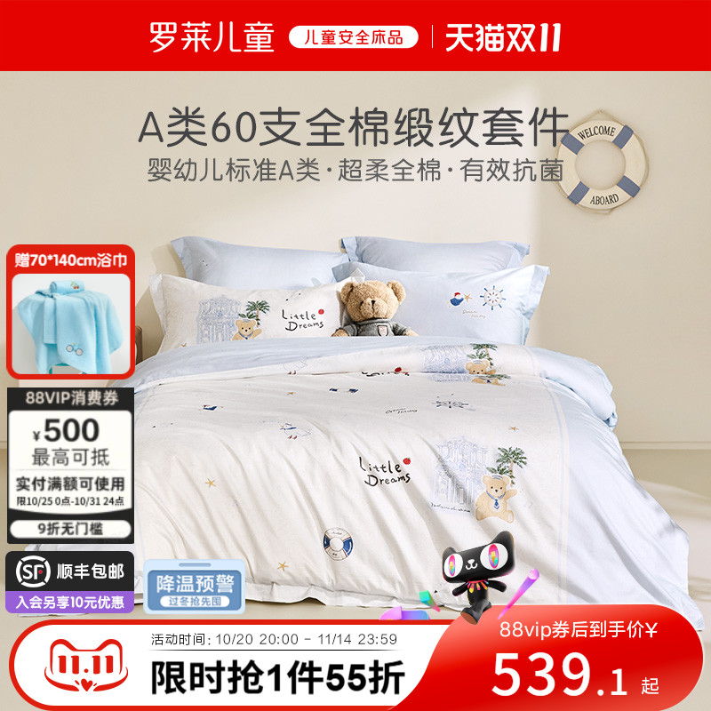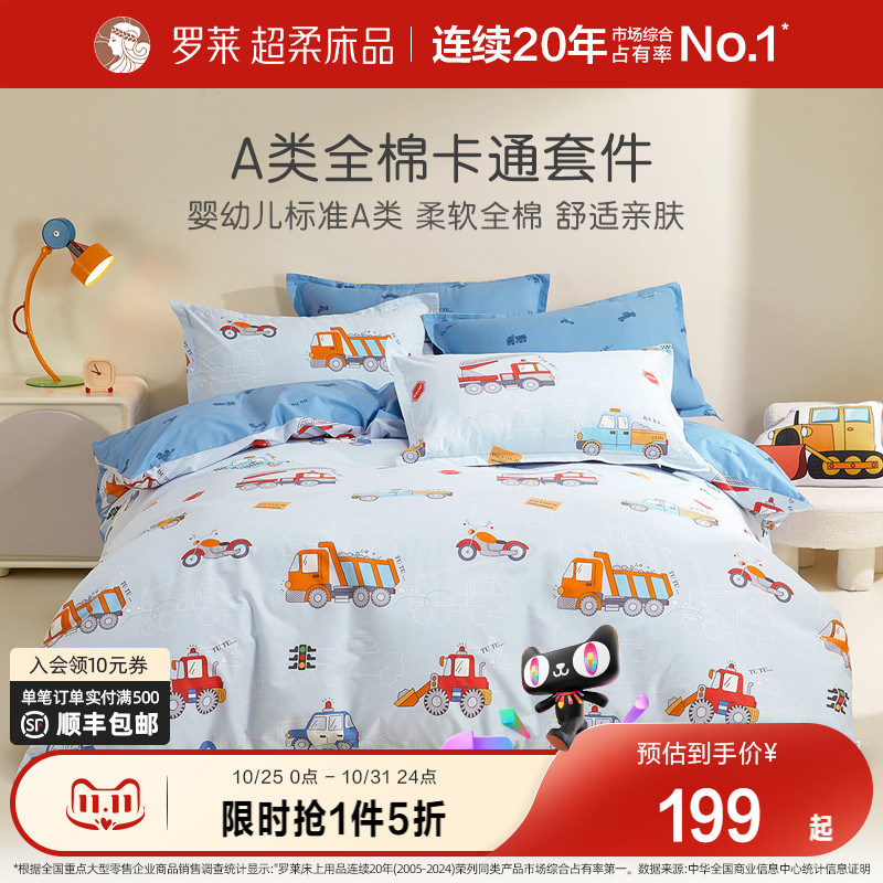 罗莱儿童四件套纯棉男孩被套全棉床单男童三件套床品春秋床上用品