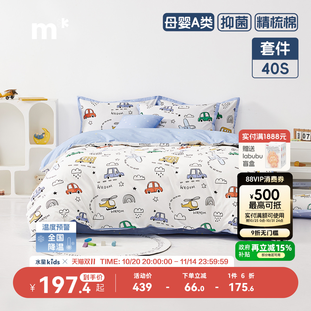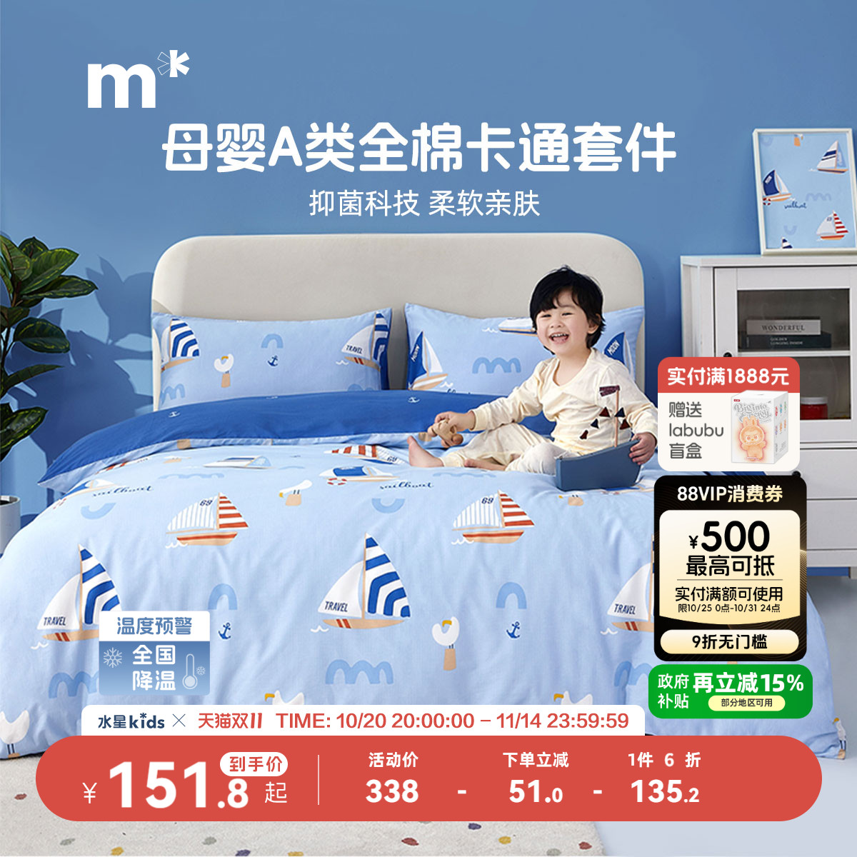 水星儿童家纺三/四件套40S纯棉A类抗菌床单被套四季男女童套件