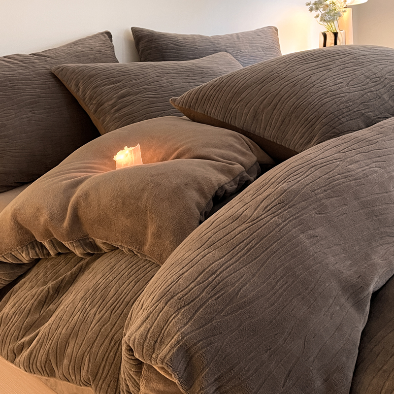 高端雕花牛奶绒四件套秋冬珊瑚绒被套2025新款男士床单床上用品三