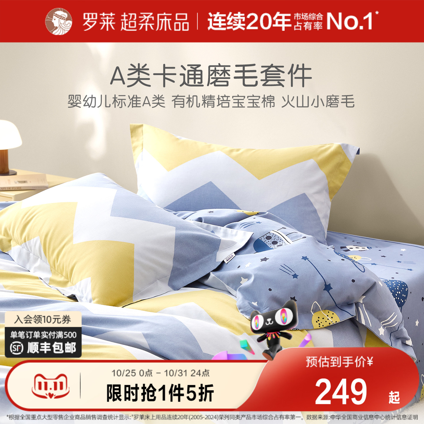 罗莱家纺儿童磨毛四件套全棉纯棉秋冬加厚床单被套男女孩学生宿舍