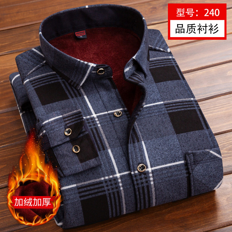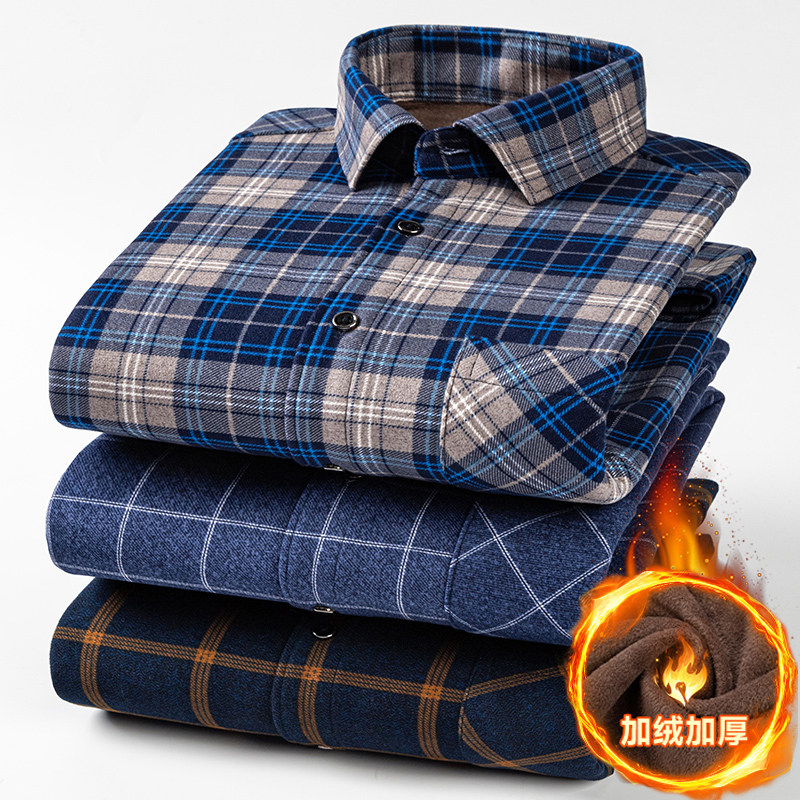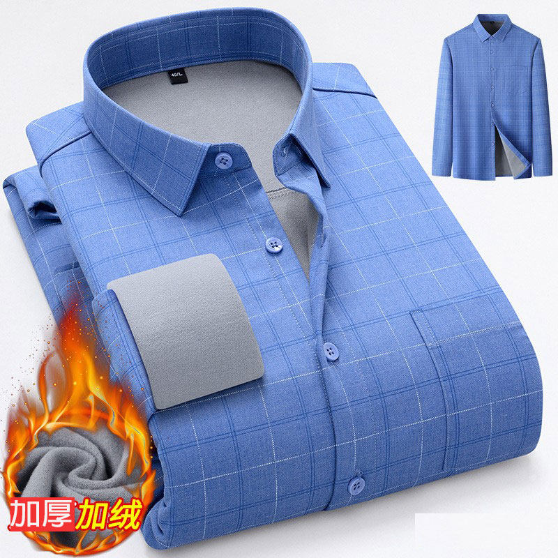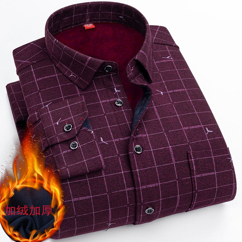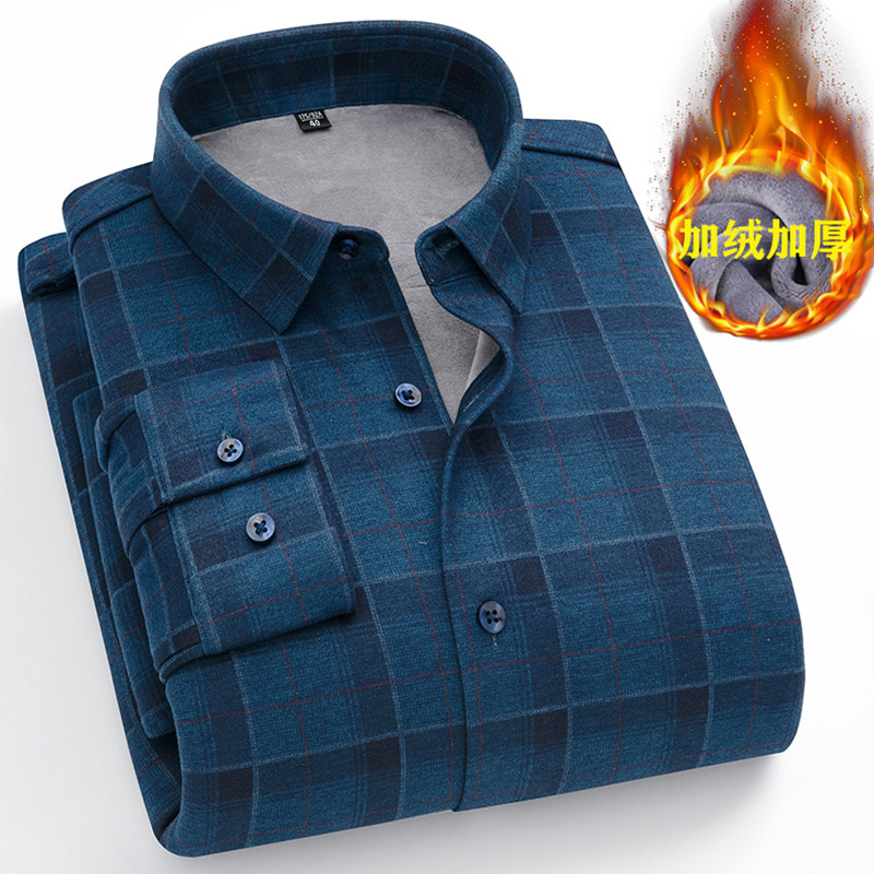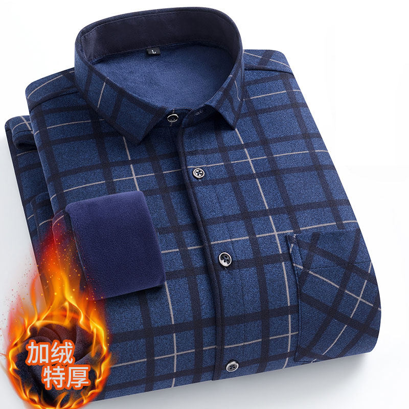 冬季中年保暖衬衫加绒加厚爸爸装保暖衬衣男长袖父亲老年衬衫男装
